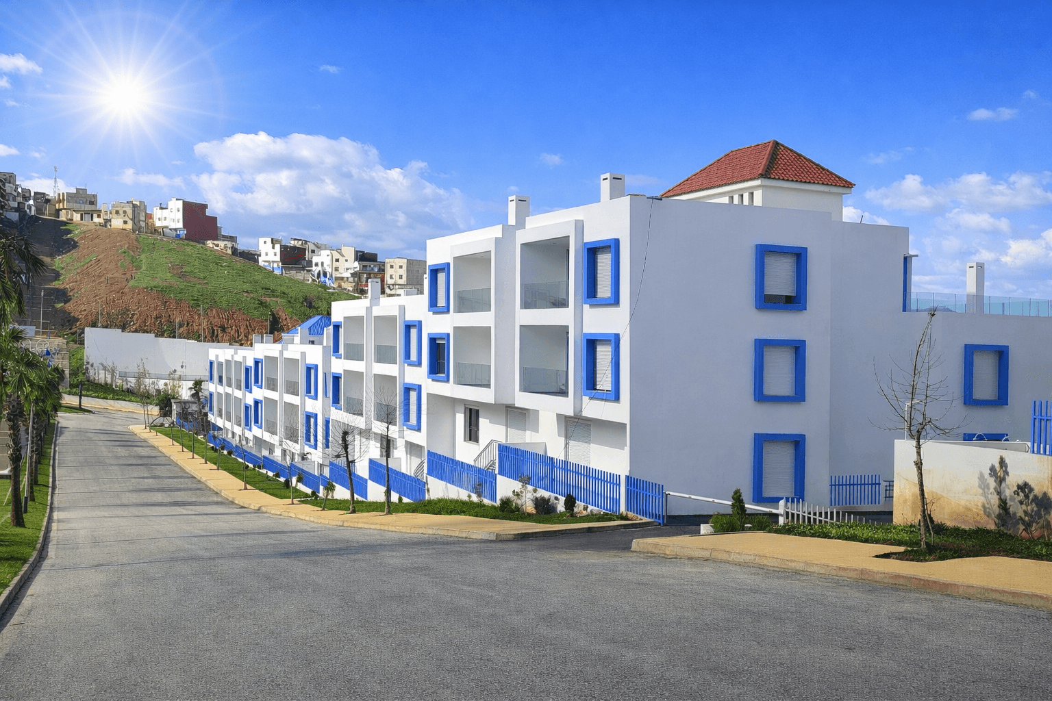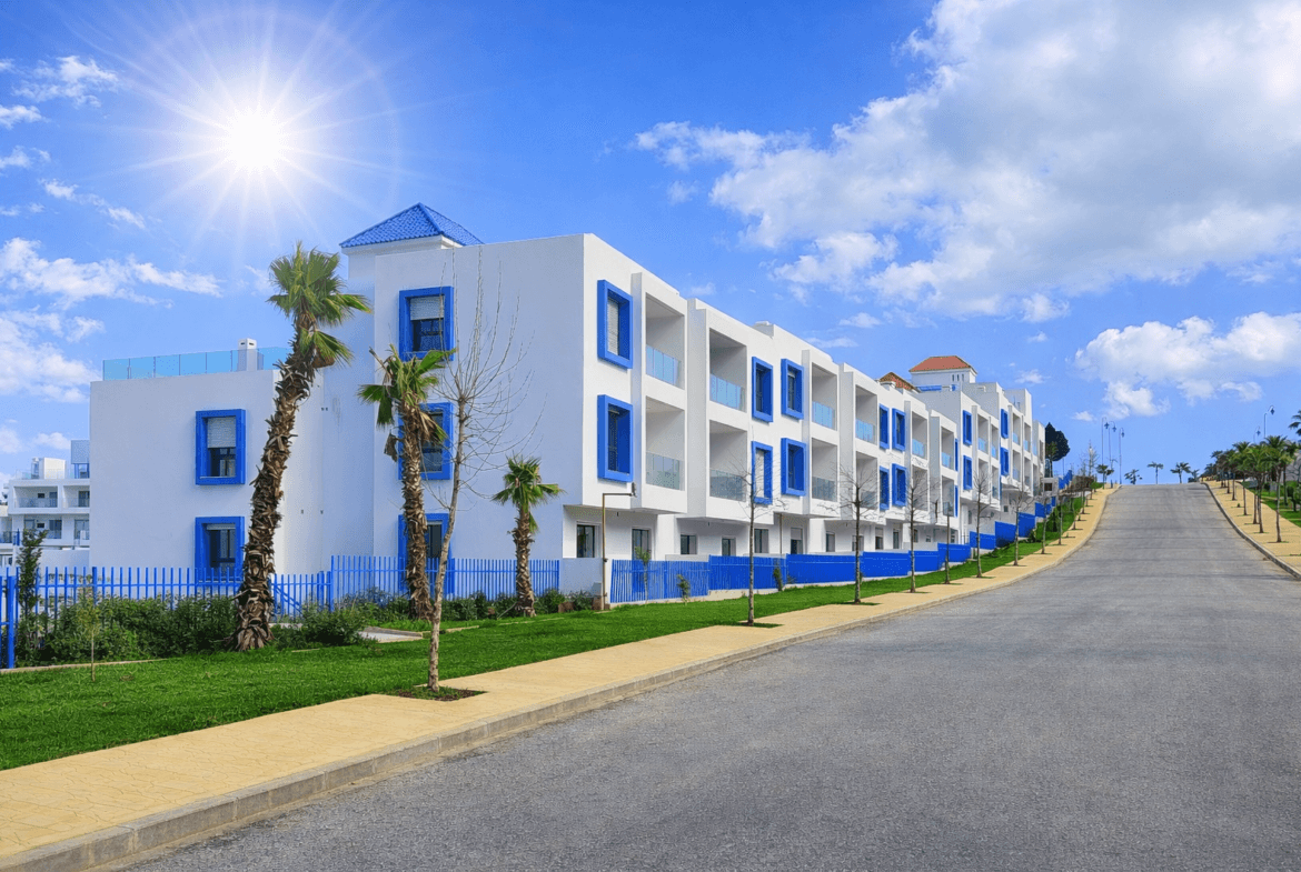 Son implantation dans un environnement associant mer, relief montagneux et espaces naturels offre un cadre calme, adapté à un usage résidentiel et touristique. Le complexe est situé à environ 5 minutes de la plage, 2 minutes du centre-ville, 15 minutes de Fnideq, 20 minutes de Ceuta et 15 minutes de l’aéroport de Tétouan–Saniat R’mel.